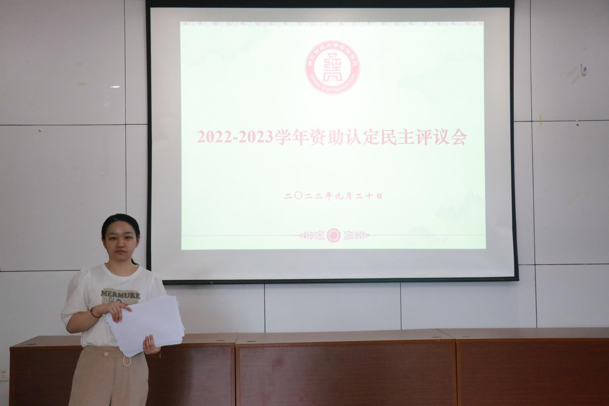 2022-2023学年学生资助对象民主评议会在学院楼219教室举行,会议由资助辅导员邓斯怡主持,全体辅导员及近200名班级民主评议小组成员参加本次会议。