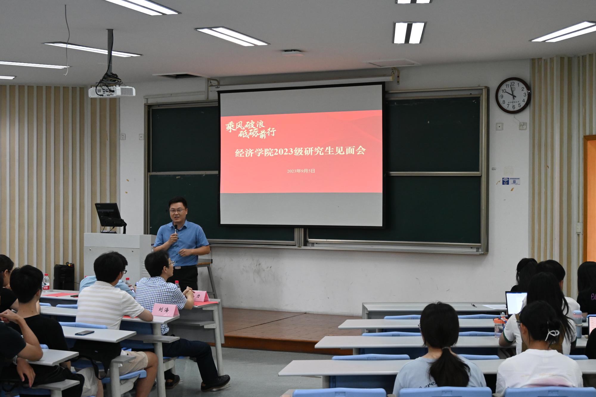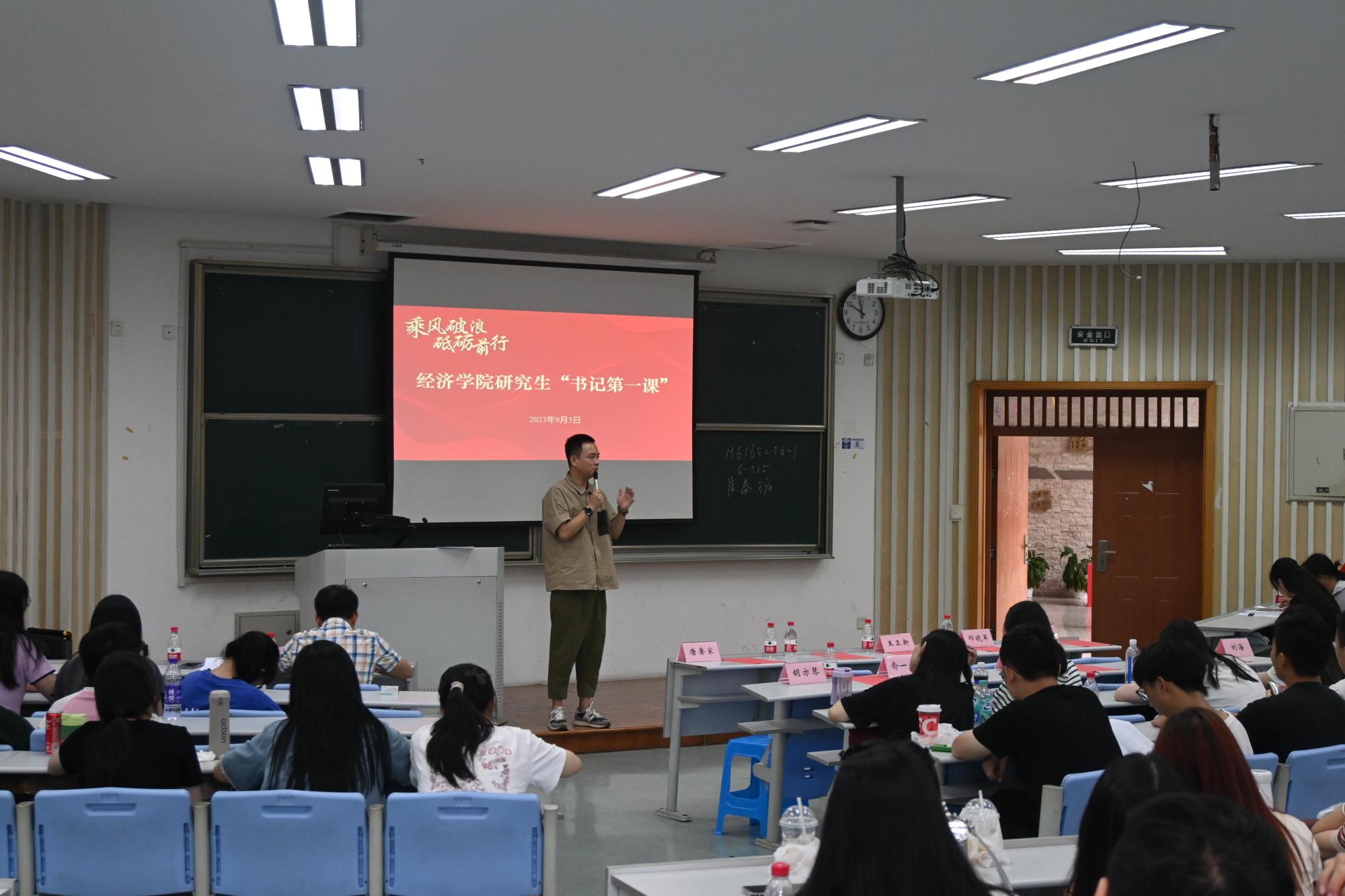 随后,各学位点负责人胡亦琴老师、唐要家老师、王力老师、邓晓军老师、赵卓嘉老师、罗俊老师分别介绍了各学位点发展情况及研究方向,勉励大家知行合一、致知笃行。“书记院长第一课”上,副院长罗俊从诚信教育、学位管理等方面展开,敦促全体研究生在“研精致思”中做到“信守不渝”。党委副书记、纪委书记崔泰铭指出,作为当代大学生,当立足新时代,坚定不移听党话、跟党走,做社会主义核心价值观的坚定信仰者、积极传播者、模范践行者,承担起时代赋予这一代青年人的使命。