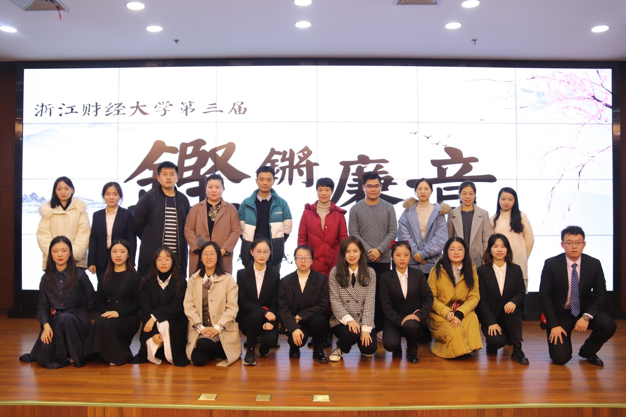 第三届铿锵廉音主题演讲比赛。校党委委员、宣传部部长楼胆群,校党委组织部费伟平,校党委宣传部俞榕,校纪检监察室林建梅,校党委学生工作部黄迪,校团委副书记徐艳妍,校党委研究生工作部施淑珍,以及同人漫画