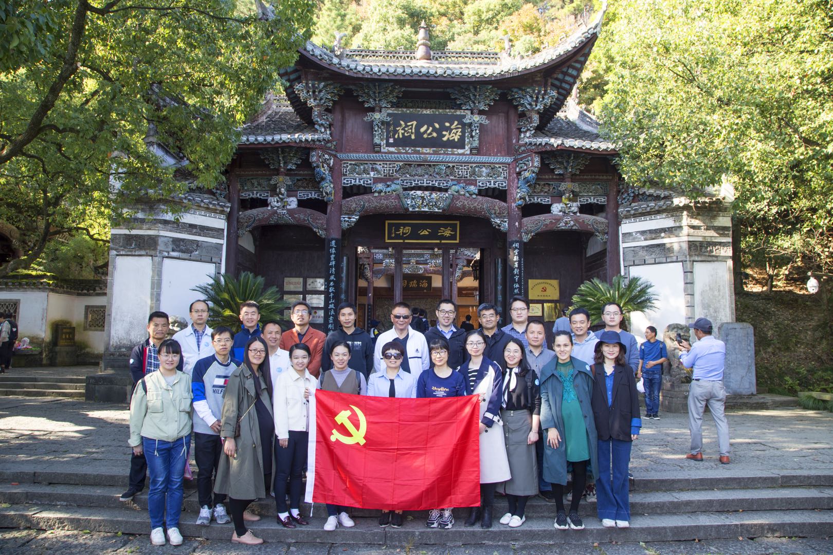 学院党员怀着崇敬的心情在讲解员的带领下参观了下姜村的沼气池、电影《我和我的家乡》拍摄取景地、文化礼堂以及村史展览馆,考察了村里的村容村貌。学院党员们在文化礼堂听取村支书所作的专题党课,驻足观看着村史展览馆内的一张张照片,学习着一个个朴实而感人的故事,在村里的一草一木中感受着下姜村改头换面的历史蜕变。党员们表示,下姜村从一个偏僻的贫困小村成长为现如今的“绿富美”生态乡村,不仅为新时代的基层组织建设提供思路,更为乡村振兴树立起了时代标杆。第二天,学院党员们前往省纪委廉政文化教育基地龙山岛海瑞祠,学习明代官员海瑞清正廉洁、勤政爱民的廉洁事迹。