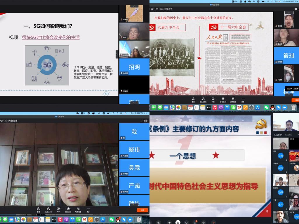 本次培训以线上授课、个人自学、红色观影、交流研讨相结合的方式进行,邀请了数据科学学院党委书记段雪辉、图书馆党总支书记杨小恩、学院党委书记胡亦琴、副书记崔泰铭分别从解读十九届六中全会精神、5G时代提升党员的信息素养、党员的初心使命、廉洁自律等方面为参训党员进行讲解,希望党员们不断加强理论学习,提高党性修养,砥砺政治品格,锤炼过硬本领,以忠诚干净担当的实际行动,自觉担负起党和人民赋予的时代重任。