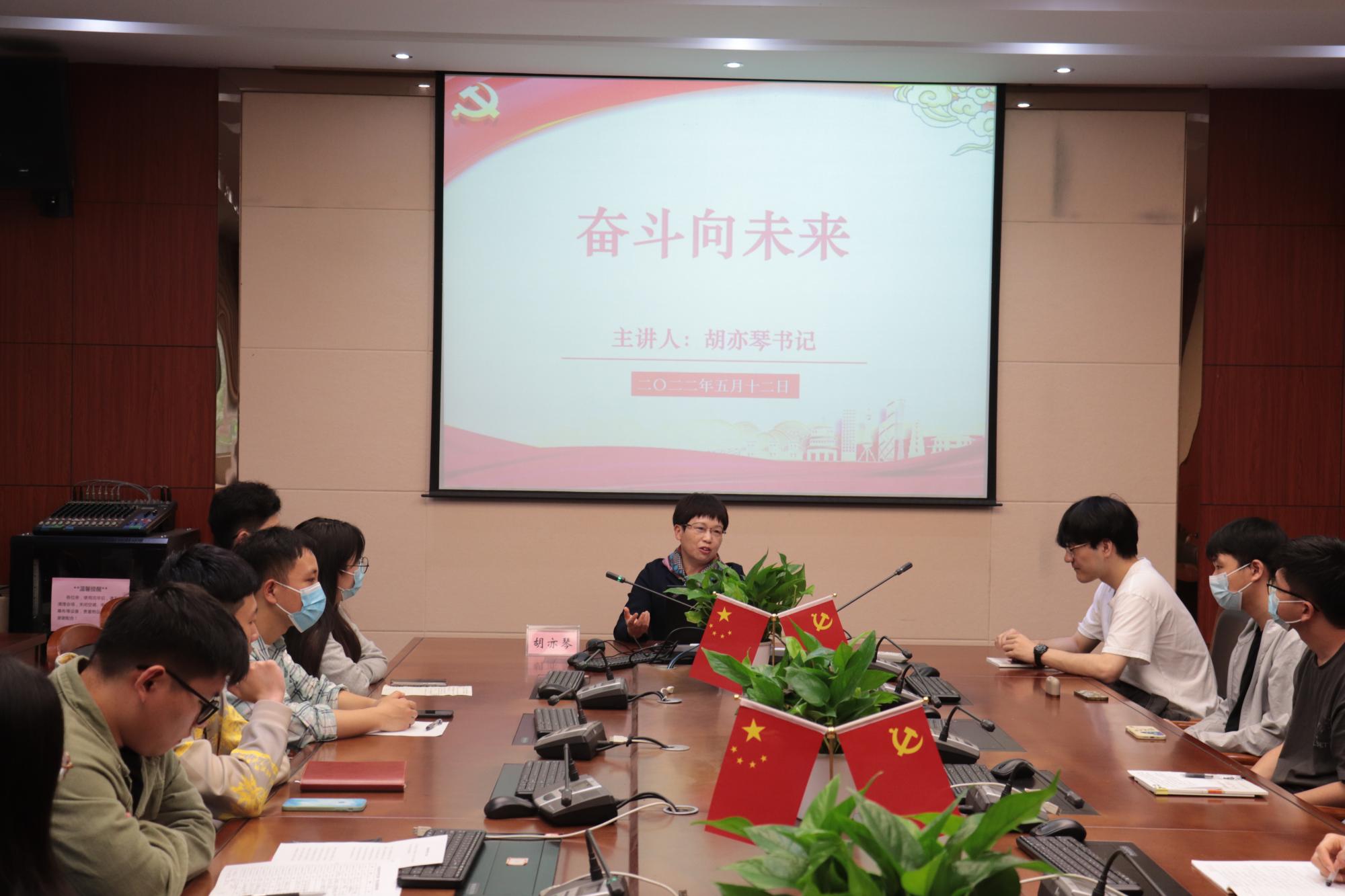 党委书记胡亦琴以《奋斗向未来》为题,给全体党员上了一堂精彩的党课。她指出,同学们要以习近平总书记的重要讲话精神为指引,深入学习习近平新时代中国特色社会主义思想,加强专业知识和政治理论学习、锤炼综合素质、敢于担当做奉献,服务于党和国家事业发展。最后,胡亦琴借用习近平总书记对青年的寄语勉励大家,“青年朋友们,人的一生只有一次青春。现在,青春是用来奋斗的;将来,青春是用来回忆的。”希望大家不负时代、不负韶华,勇挑重担,让青春在党和人民最需要的地方绽放绚丽之花,以更加优异的成绩迎接党的二十大胜利召开!