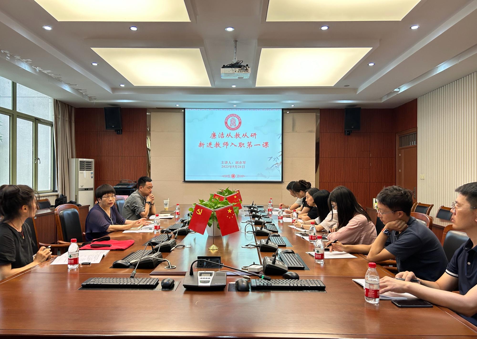 为深入开展学习贯彻习近平新时代中国特色社会主义思想主题教育,教育引导新进教师将学习成果切实转化为履职尽责、担当作为的实际行动,进一步加强师德师风建设,9月26日,学院党委开展了新进教师“廉洁从教从研”入职第一课,本次活动由党委书记胡亦琴主持,8名新入职教师参加了培训。