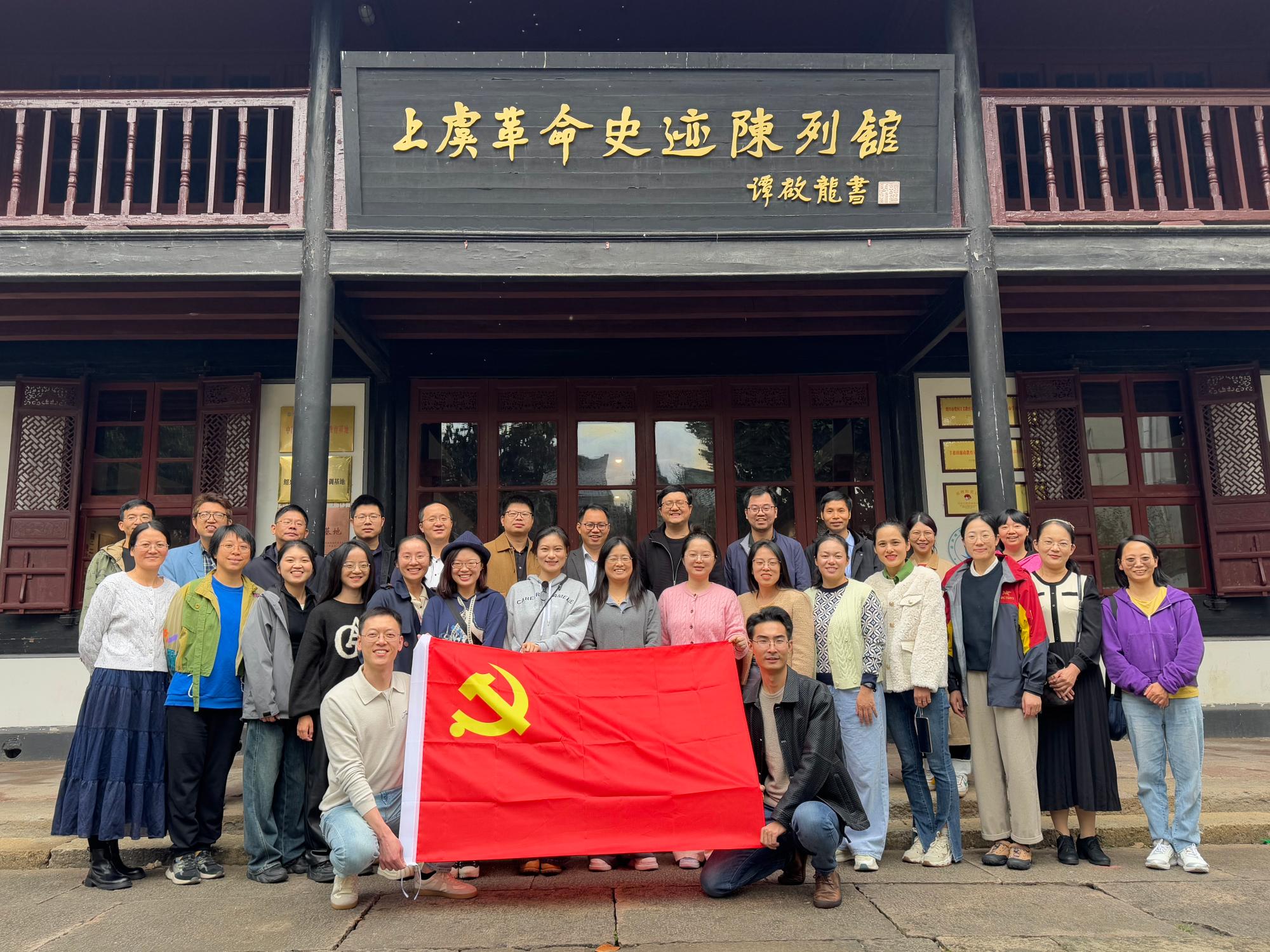 为进一步加强党性教育,弘扬革命精神,学院近日组织四十余名教职工党员赴绍兴上虞开展主题党日活动,通过实地考察与学习,深化对党的历史和初心使命的理解。