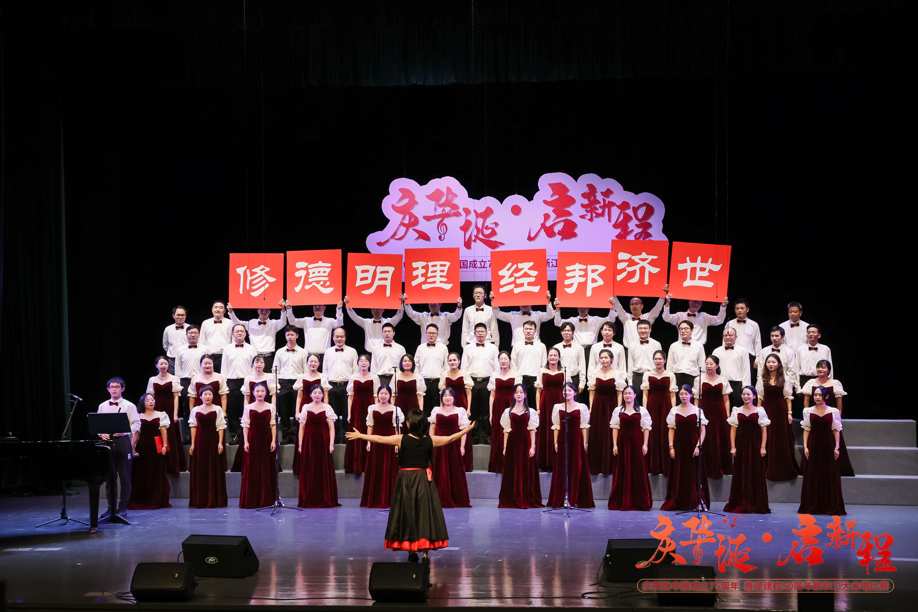 在庆祝中华人民共和国成立75周年与学校建校50周年的双重喜庆时刻,学校于10月15日在文化中心剧场举办了“庆华诞 启新程”教职工大合唱比赛。同人漫画