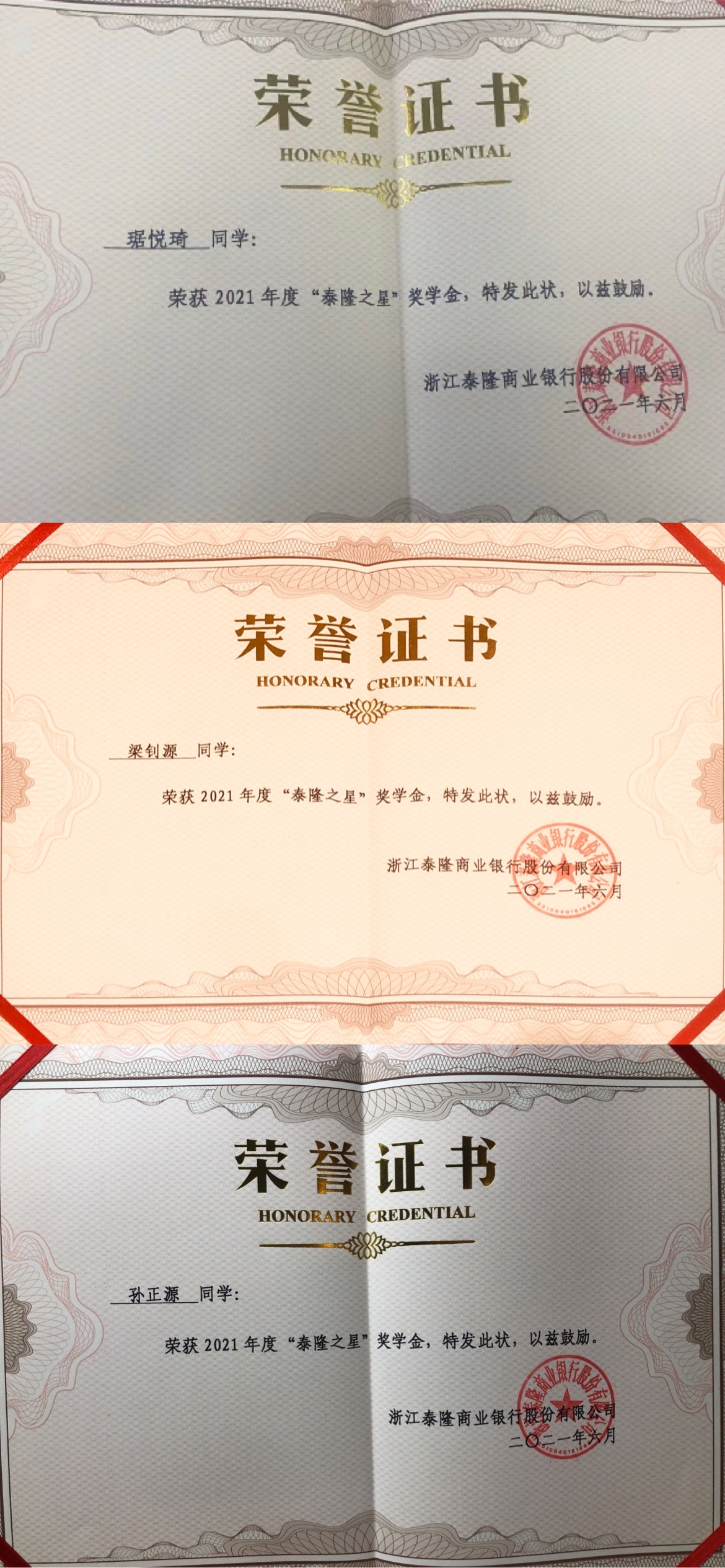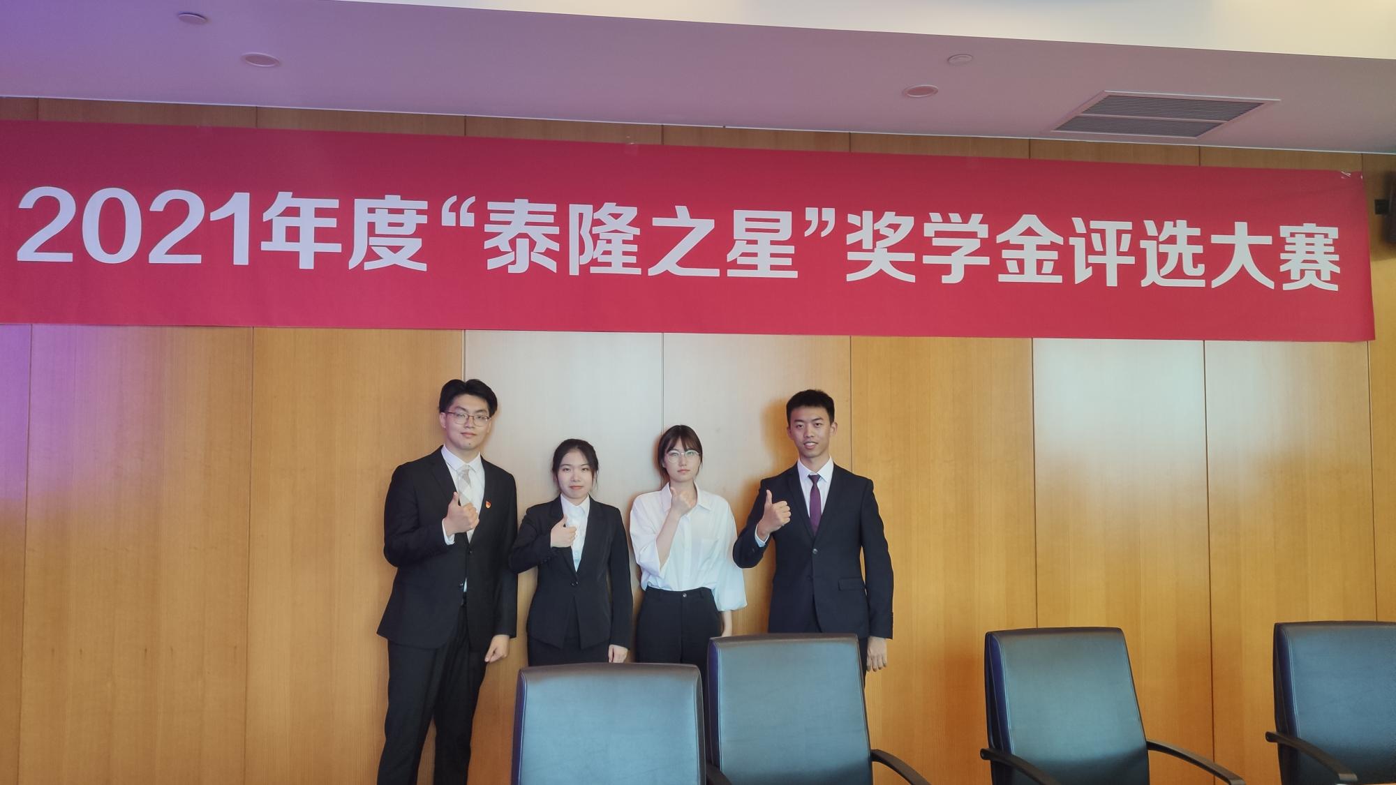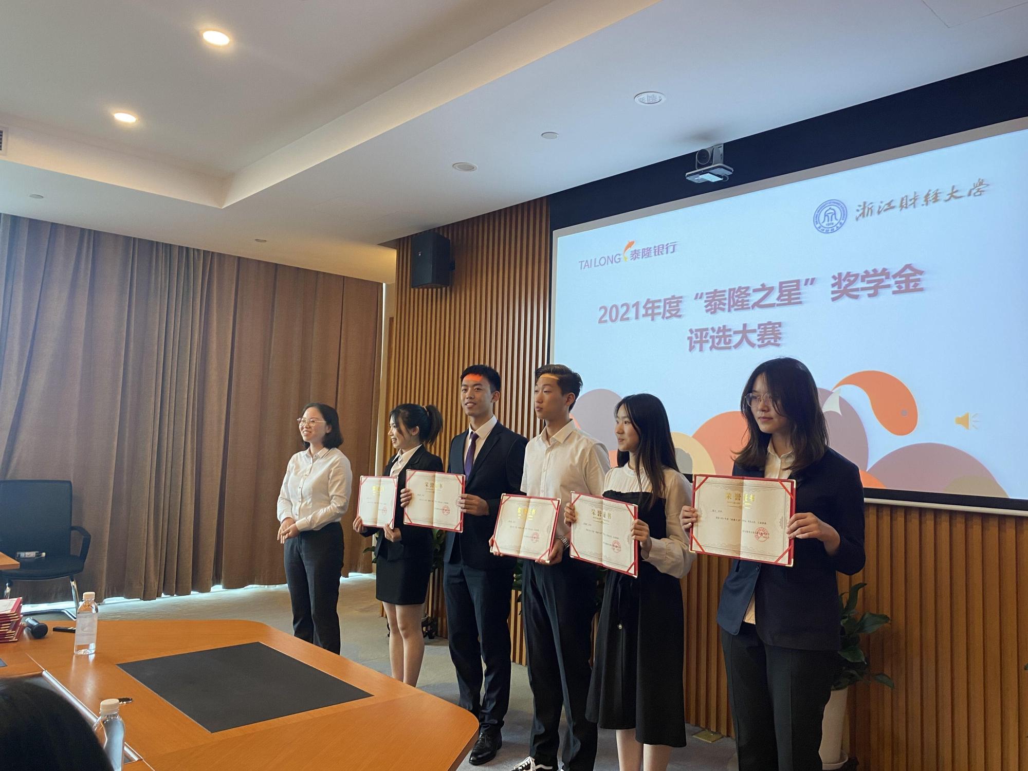 学生琚悦琦、梁钊源、孙正源分别以第一名、第二名、第十三名的好成绩荣获第十二届“泰隆之星”奖学金。