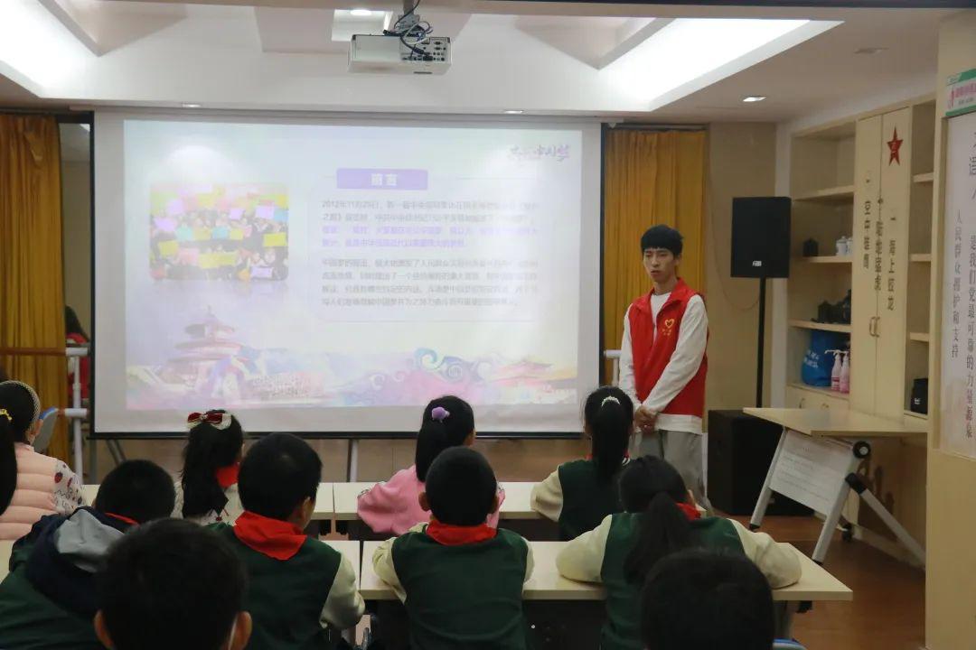 在仪式后的“学习二十大,共绘中国梦”主题课堂上,志愿者以党的二十大内容引入,分别从中国梦的定义、个人梦与中国梦的关系以及共同实现个人梦与中国梦的途径三个方面向社区孩子们展开介绍。同时,志愿者们与孩子们共同完成“我的中国梦”主题绘画,孩子们用充满想象力的画笔,描绘出了他们心中的个人梦,这些个人梦最终也将变为一股细流,汇入中国梦的汪洋大海之中。