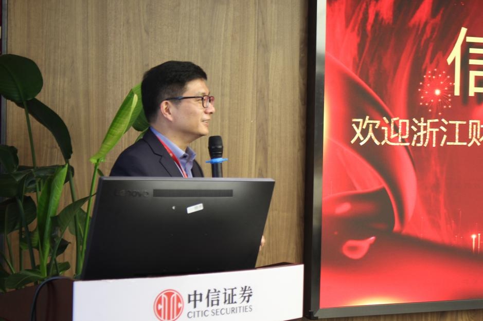 来到中信证券浙江分公司后,同学们跟随负责人来到会议室,观看了中信证券公司的介绍视频。在对公司有了初步的了解之后,业务二中心总经理同时也是浙财校友的沈海平进行开场致辞,对同学们的到来表达了热烈的欢迎。业务二中心副总经理王心心进行了一场以”信梦想,创未来“为主题的报告,介绍了证券行业、公司业务及人才培养计划。随后,今年入职中信的我校金融学院的优秀毕业生向大家介绍了她从大三实习到成功入职的切身经历。“来到中信实习的每一天我都在学习、都在成长”,学姐动情地说道。