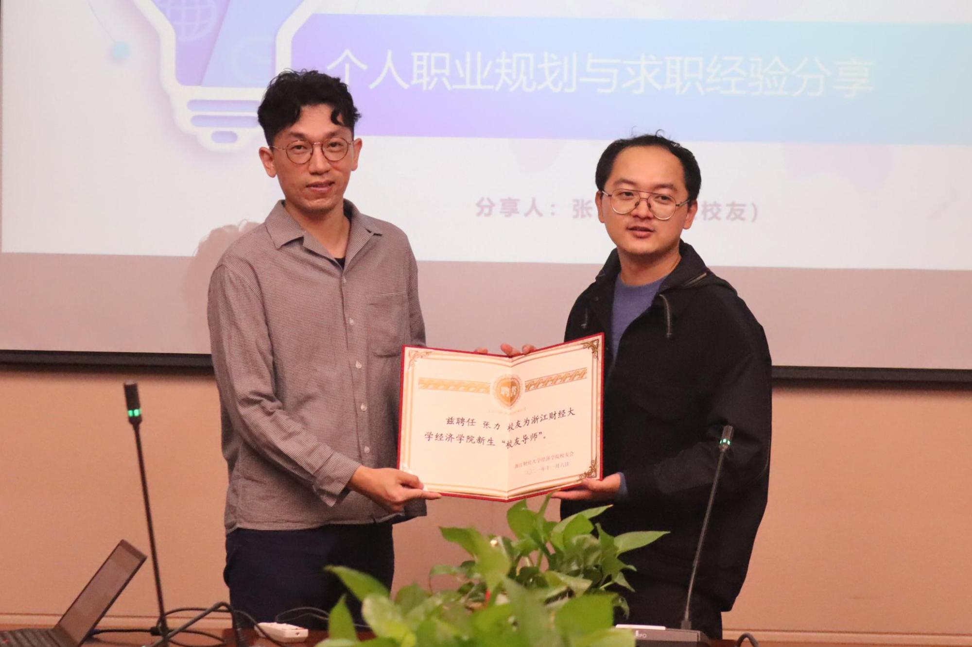 上午10时,本科生“筑梦前行”梦想课堂、研究生“研途起航”梦想课堂、“经创家”创业课堂同时在学院楼举行。毕业后再次回归母校,校友们心情格外激动。周晟佳、卢建雄、钱声绘等9位校友成为了梦想导师、创业导师,他们分享了大学期间、毕业后的奋斗经历,讲述了他们的思考与实践,搭建起了校友与在校生沟通的桥梁。