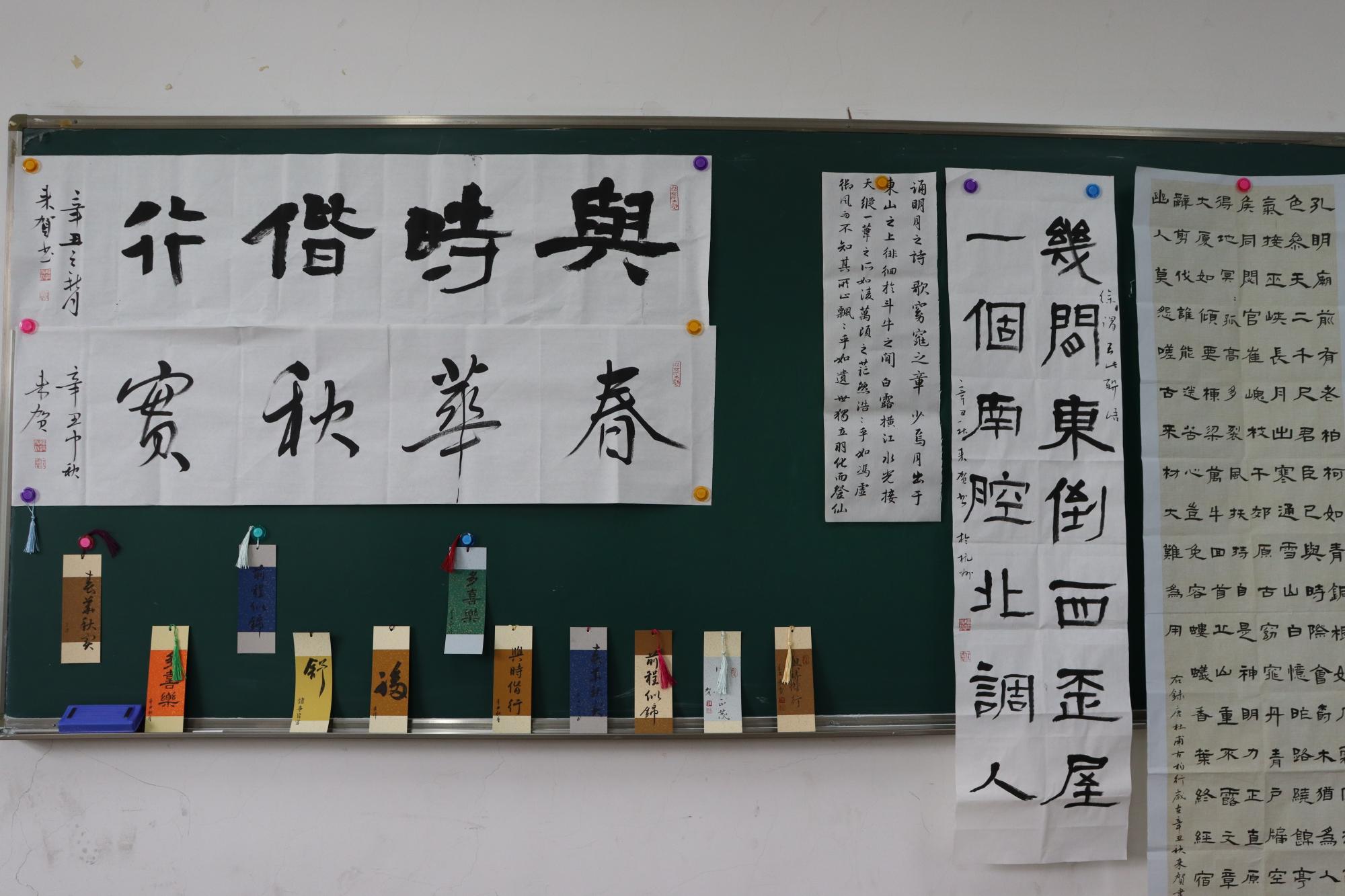 上午11时,返校日现场书法展在学院楼105教室展开。书法作为中国传统艺术,蕴含着深厚的历史文化。在返校之际,学院特别设置了“汲古书屋”供校友留下墨宝,这是经院人祝福母校与书法艺术的一次奇妙组合,超过50余人参观、参与了书法展览。