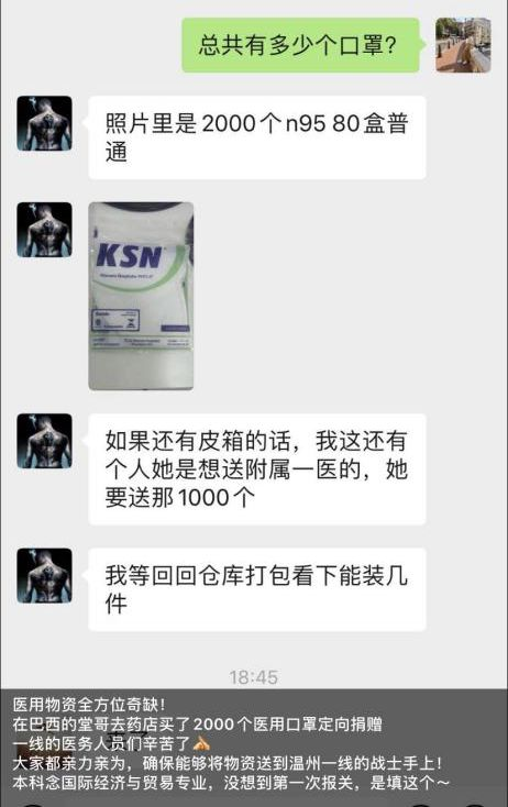 11级国贸专业的林偌嫣学姐在得各地医院防护物资告急后,一直联系对接海外各方组织和平台,从纽约、墨尔本、圣保罗、巴黎等地寻找医用物资,驰援武汉,守护温州。