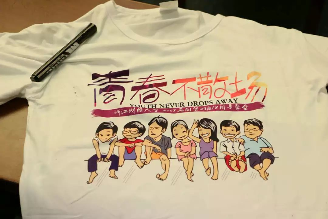 大家见到许久未见的老同学,欣喜之情溢于言表,热情地打招呼、聊天,纷纷换上了定制的纪念T恤,并签字留念。