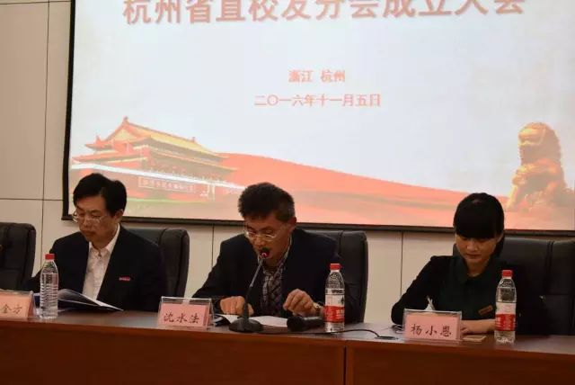 杭州(省直)校友分会会长、副会长、秘书长、副秘书长名单。校纪委书记陈金方为学院杭州(省直)校友分会授旗并为会长、副会长颁发聘书。院长胡亦琴为同人漫画