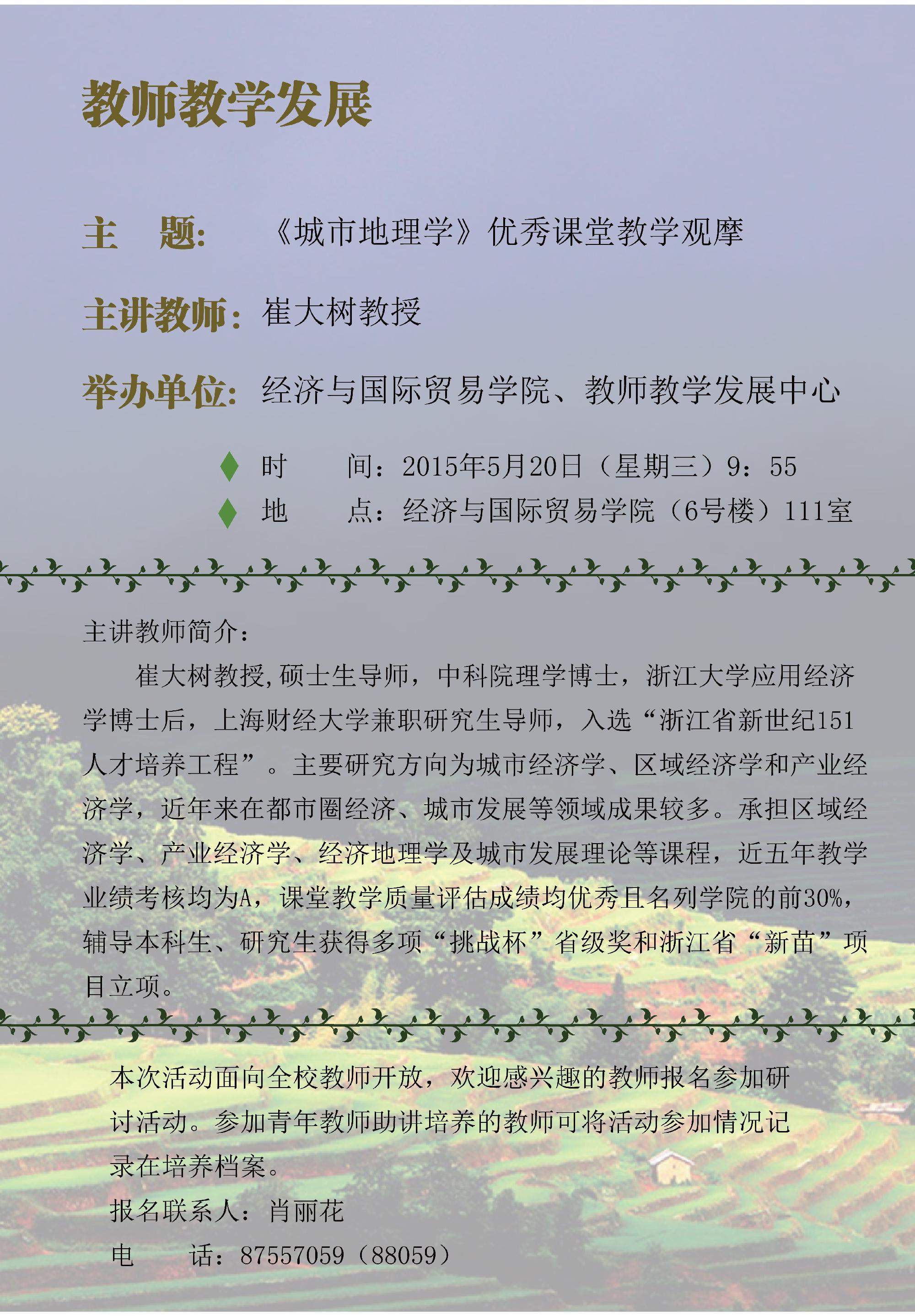 “教师教学发展”系列活动预告——《城市地理学》课堂教学观摩