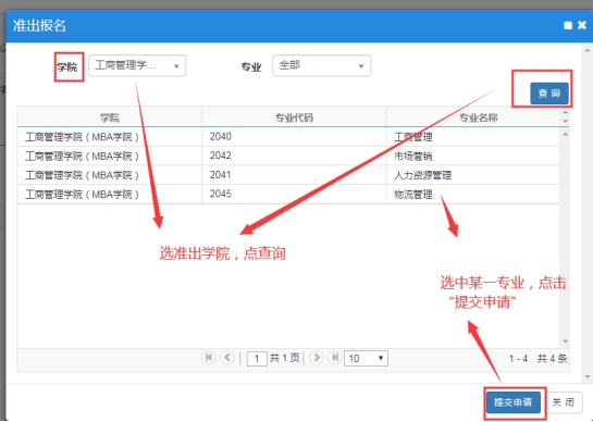 2.选择意向准出专业,提交申请