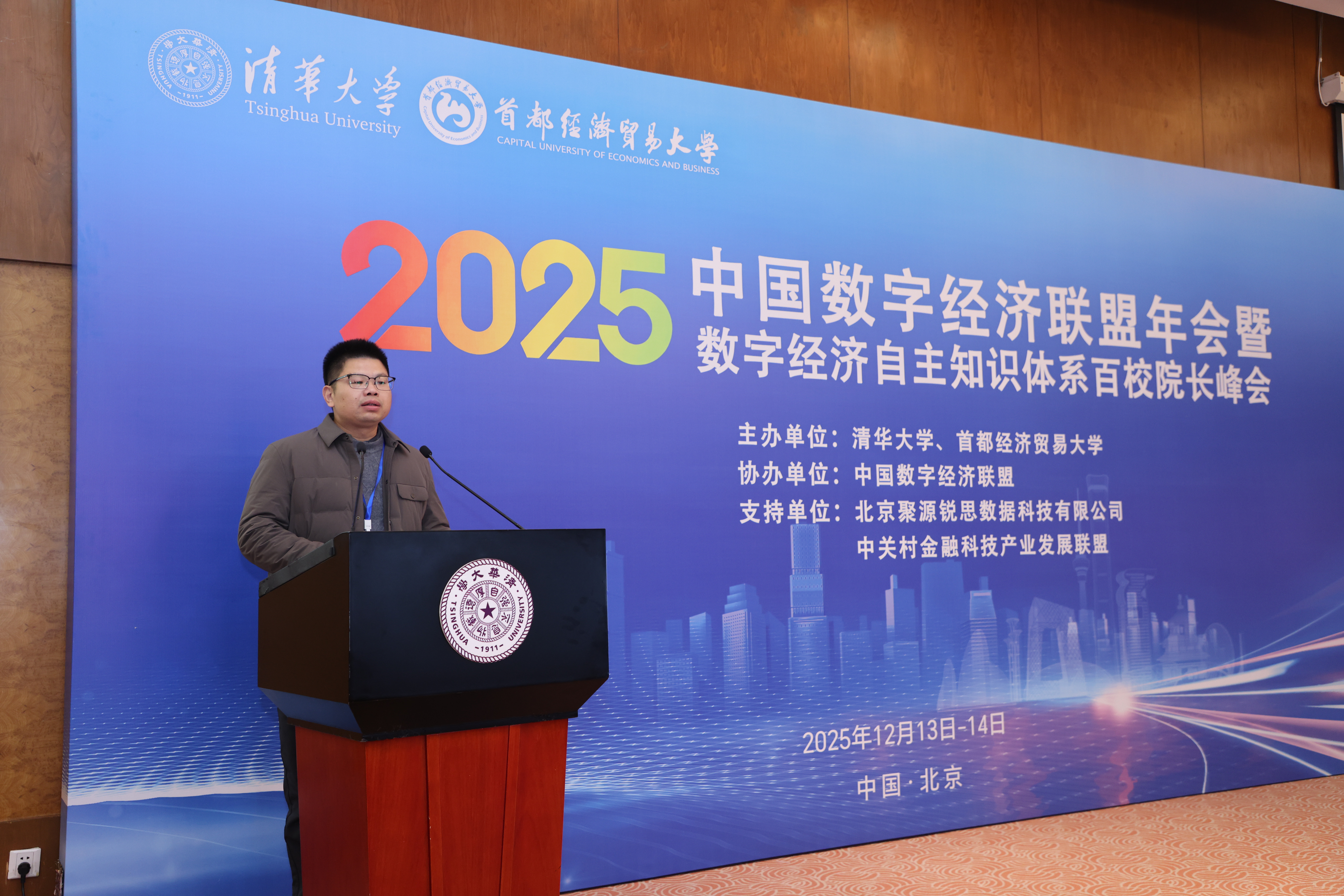 为深入贯彻落实习近平总书记关于建构中国自主知识体系的重要论述,2025年12月12日至14日,由清华大学、首都经济贸易大学联合主办、中国数字经济联盟协办的中国数字经济联盟年会暨数字经济自主知识体系百校院长峰会在北京举行。学院副院长邓晓军应邀参会,并在“数字经济人才培养”分论坛中作专题报告。